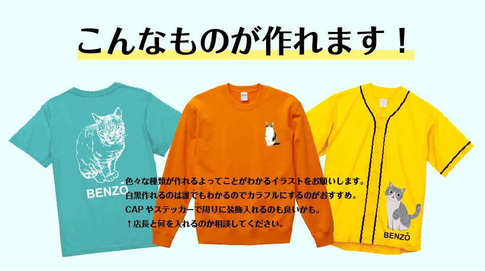 ※綿80%以上ないと、綺麗にプリントできません